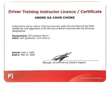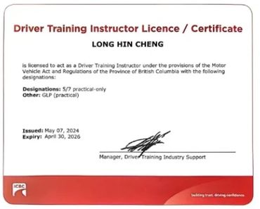 He provides structured, exam-focused training and sets the overall teaching standards for the academy, with a strong emphasis on safety, clarity, and ICBC road test readiness.
